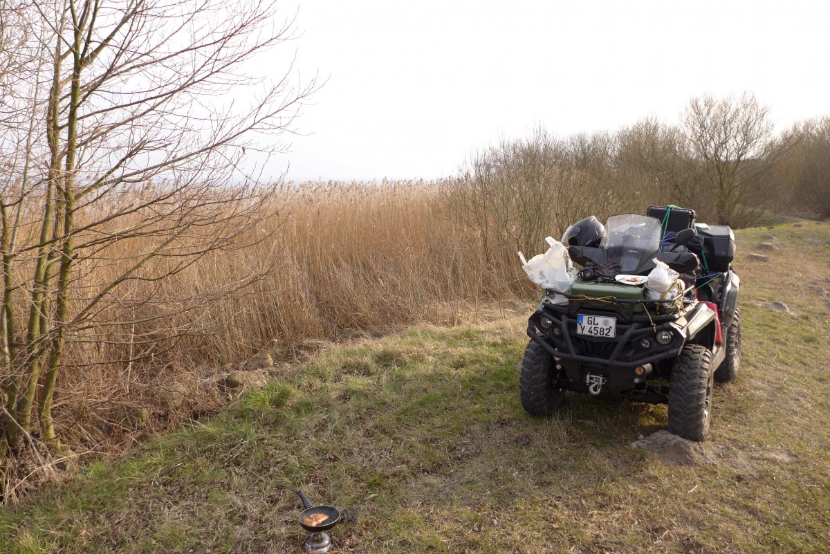 Buddy kam im Folgejahr mit zwei ‚Can-Am Outlander’ Quad-Modellen daher. Diese Maschinen sind unglaublich agil. Steigungen von 30 Grad meistern sie mühelos, egal bei welchem Untergrund und das mit voller Zuladung. Allrad, Kraft, pneumatische Höhenverstellung, Seilwinde, u.v.m. machen diese Höllenmaschinen zu einem wahren Outdoor-Pferd. Wir kamen mit ihrer Hilfe an Orte wo andere Fahrzeuge (inklusive Jeep Wrangler) längst versagt hätten – allein wegen ihrer Größe. Ein Motorrad ist auch wieder etwas anderes. Anyway … diese Maschinen des kanadischen Herstellers BRP sind der Wahnsinn. Eine ausführliche Schilderung dazu folgt an einer anderen Stelle.